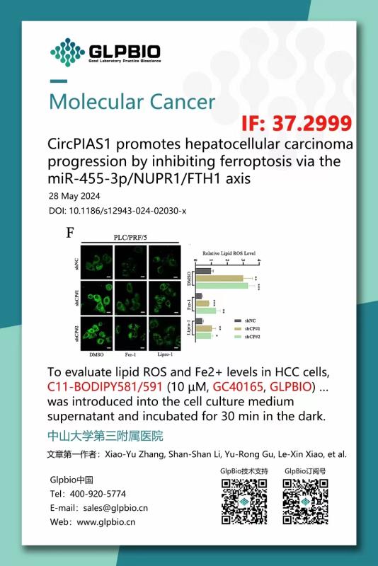 GLPbio C11 BODIPY 581/591 (GC40165) 助力中山大學(xué)第三附屬醫(yī)院發(fā)表高分文獻Molecular Cancer(IF:37.2999)