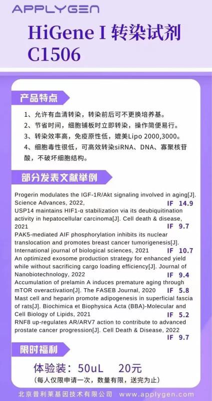 普利萊公司高效低毒性轉染試劑,siRNA/DNA/寡聚核苷酸都可以轉,值得一試!